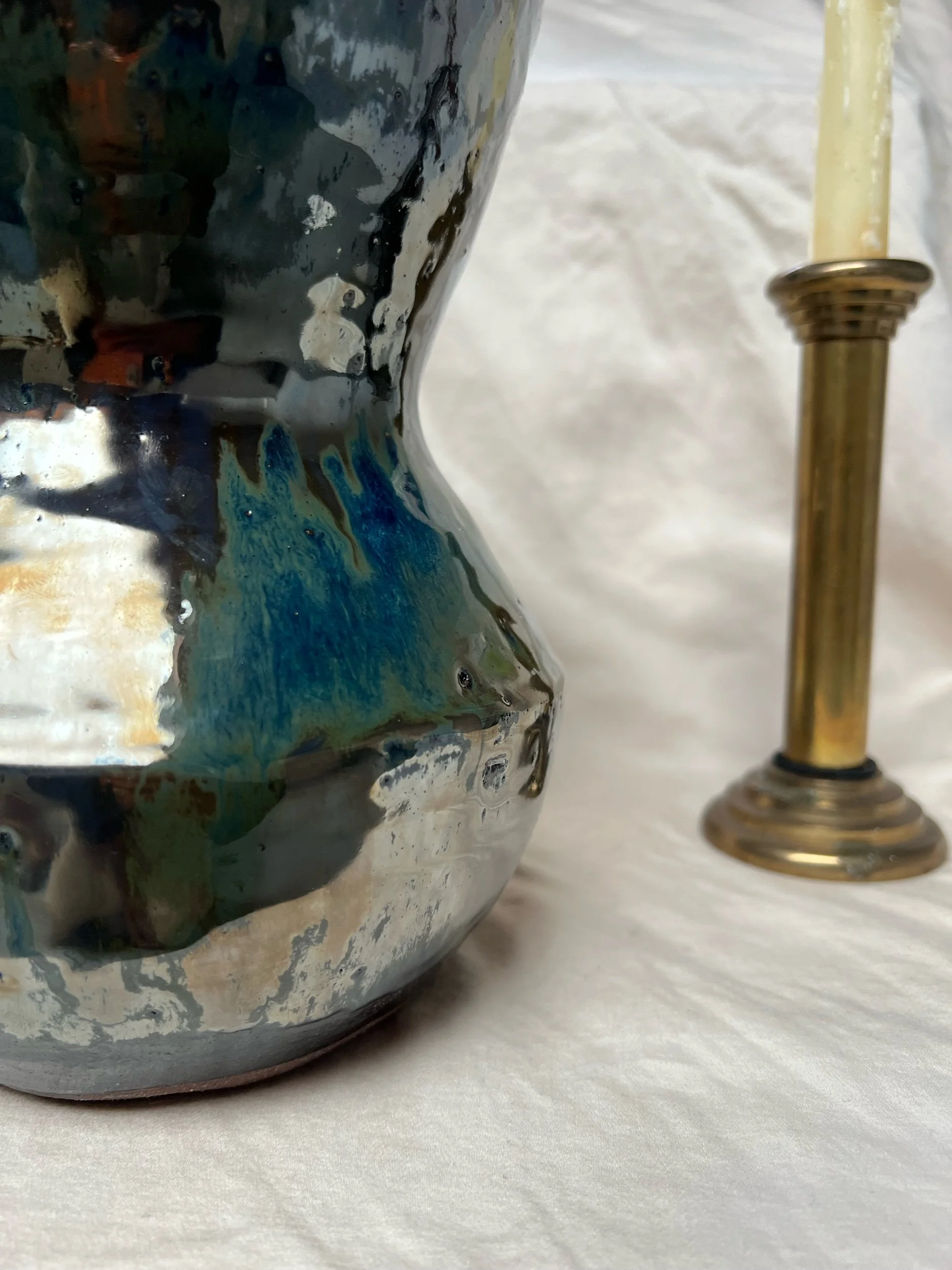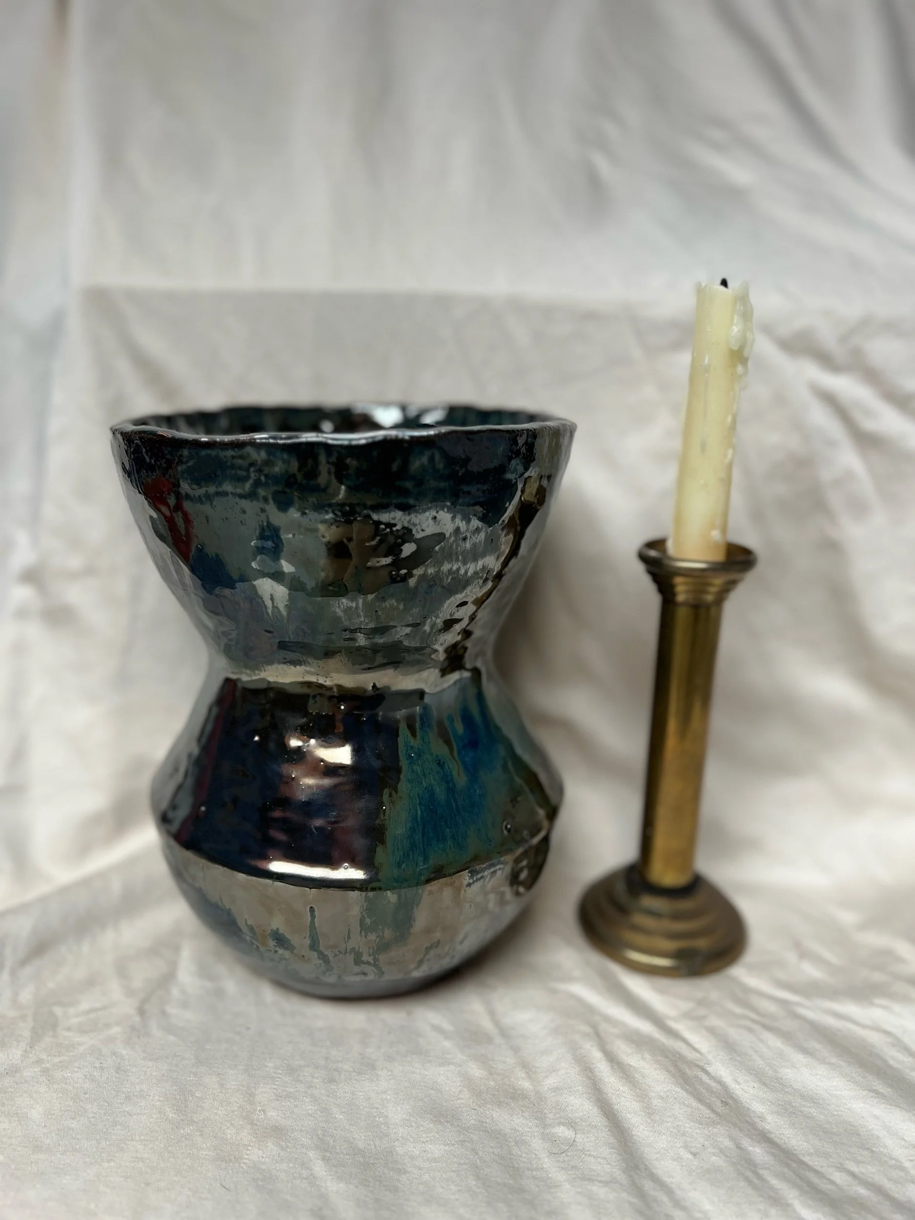 offerings › Metallic Vessel Image 1 of 2 Image 2 of 2 Metallic Vessel $160.00 Large hand built ceramic vessel with metallic glaze. Get notified by email when this product is in stock. Add To Cart Added! Large hand built ceramic vessel with metallic glaze.