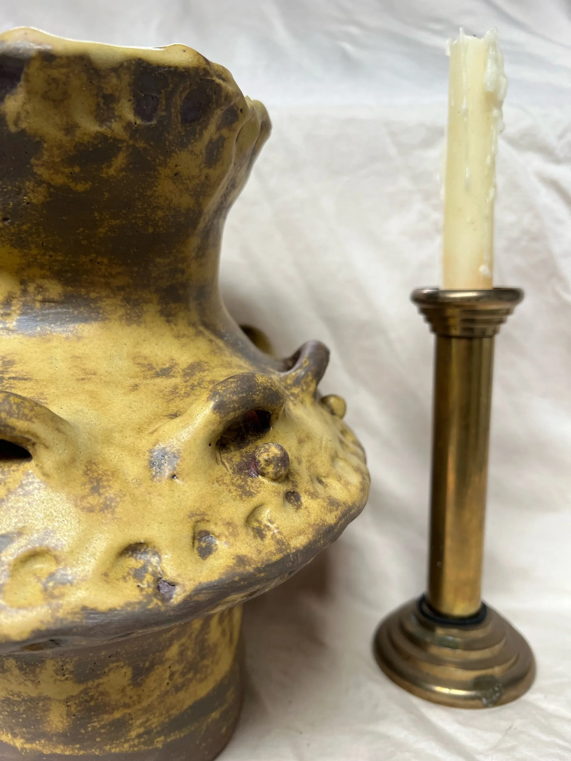 offerings › Yellow Iron Vessel Image 1 of 3 Image 2 of 3 Image 3 of 3 Yellow Iron Vessel $350.00 Large hand built ceramic vase. One of one. Get notified by email when this product is in stock. Add To Cart Added! Large hand built ceramic vase. One of one.