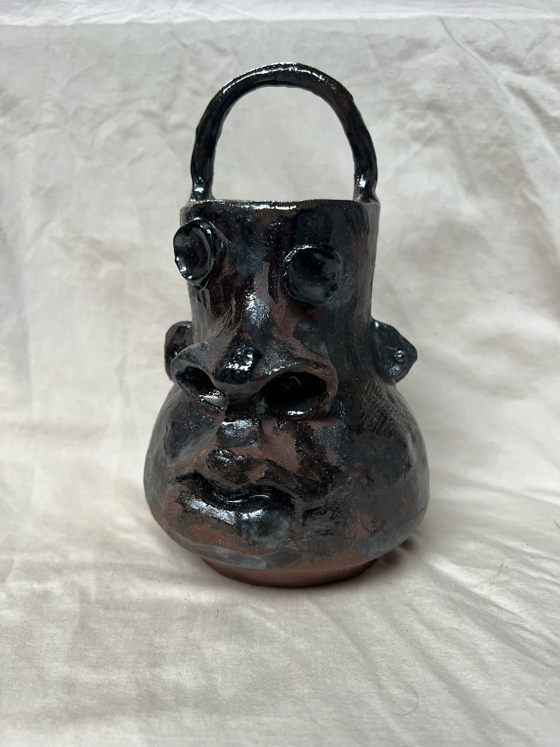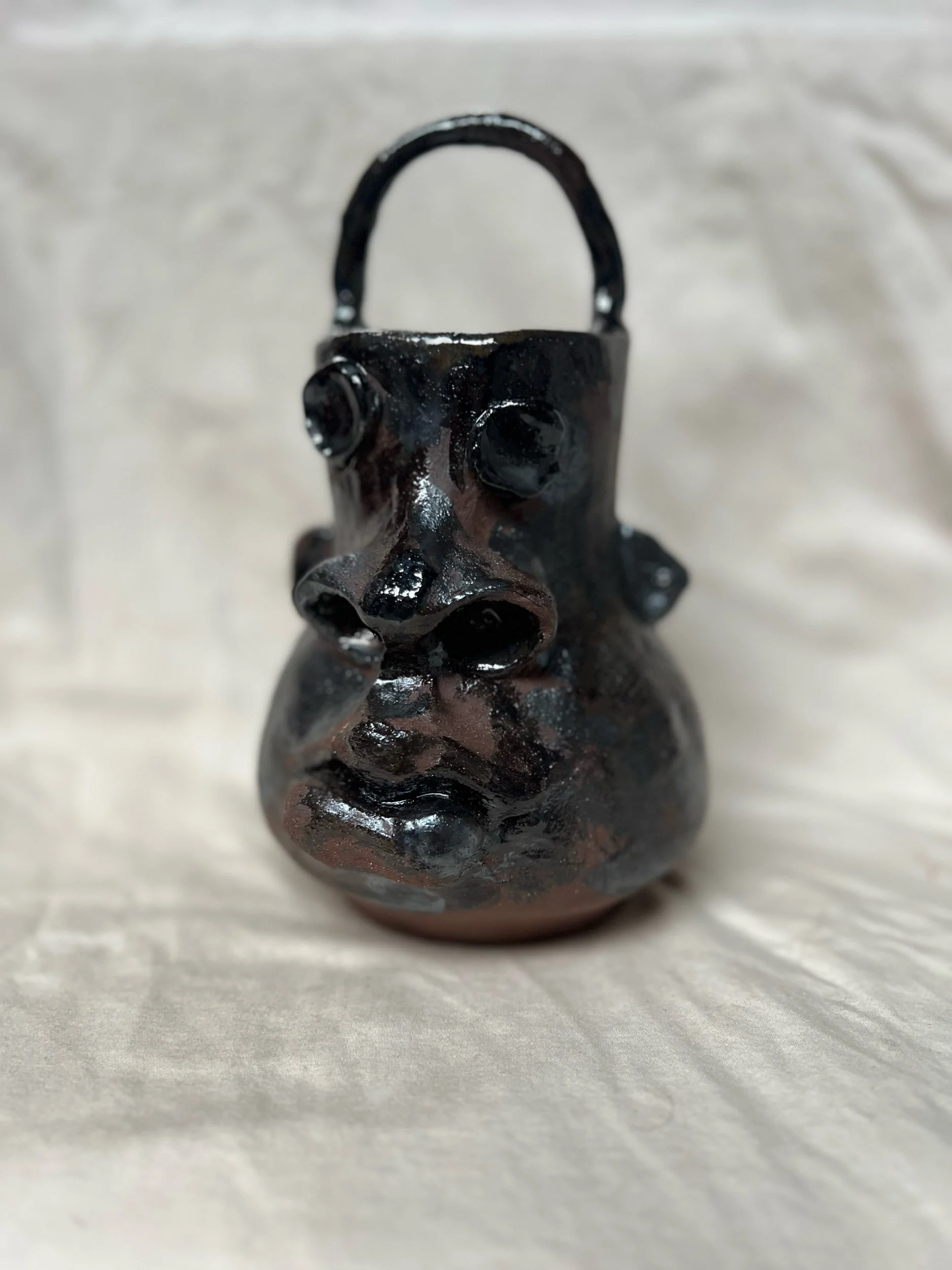 offerings › Face Jug Image 1 of 2 Image 2 of 2 Face Jug $200.00 Dark clay and glaze face jug with handle. Get notified by email when this product is in stock. Add To Cart Added! Dark clay and glaze face jug with handle.